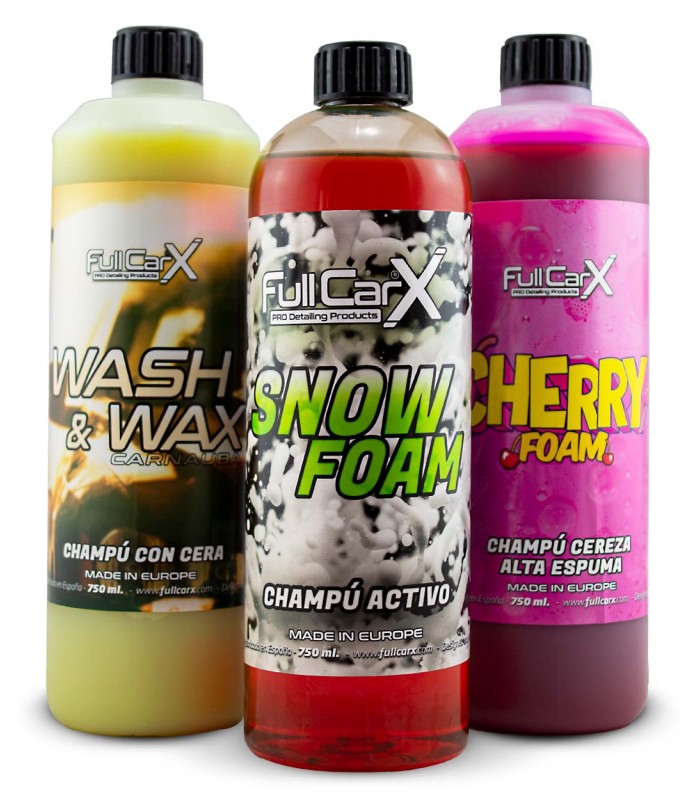 Descubre los tres champús estrella de FullCarX reunidos en un solo kit. Con distintas fórmulas y aromas, este pack te ofrece versatilidad y resultados profesionales para cada lavado. Espuma activa, limpieza profunda y acabado brillante, todo en uno.