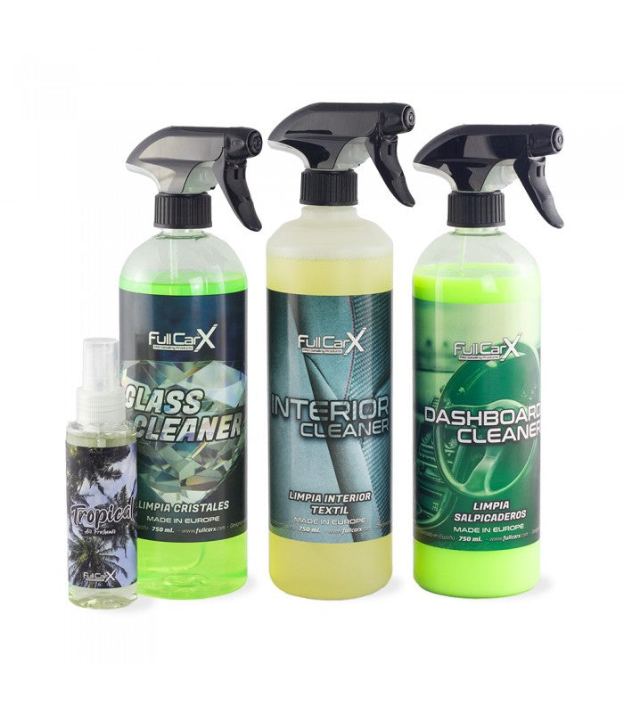 Este kit ha sido creado para ofrecer una limpieza interior completa y eficaz en cualquier tipo de vehículo. Ideal para mantener el habitáculo en perfecto estado, incluye todo lo necesario para cuidar textiles, salpicaderos y cristales, además de un ambientador sorpresa que aportará un toque fresco al finalizar la limpieza.